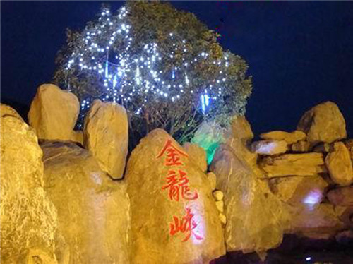 簡介—— 陜西蘭光戶外照明有限公司為西安市金龍峽景區(qū)設(shè)計安裝的噴泉亮化工程效果展示照片