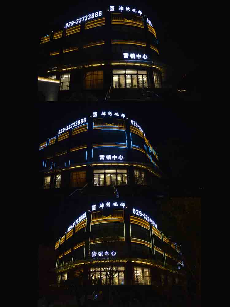 簡(jiǎn)介—— 2018 榮盛景秀觀邸售樓部亮化,蘭光設(shè)計(jì)師根據(jù)其榮盛景秀觀邸售樓部商業(yè)屬性,商業(yè)照明設(shè)計(jì)明亮而醒目,營(yíng)造商業(yè)經(jīng)營(yíng)的夜景氛圍。以靜態(tài)的暖色燈光將其打亮,凸顯雅致。“榮盛景秀觀邸”標(biāo)志以高亮度的燈光,吸引顧客注意,增強(qiáng)商業(yè)宣傳力度。景觀燈造型與建筑外立面造型完美融合,晚上光斑效果與綠植景觀交相輝映,相映成趣!榮盛景秀觀邸